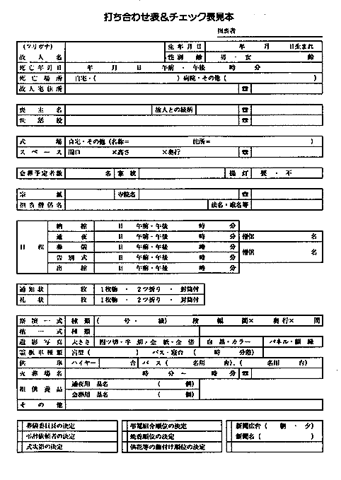 葬儀社打ち合せ&チェック表見本