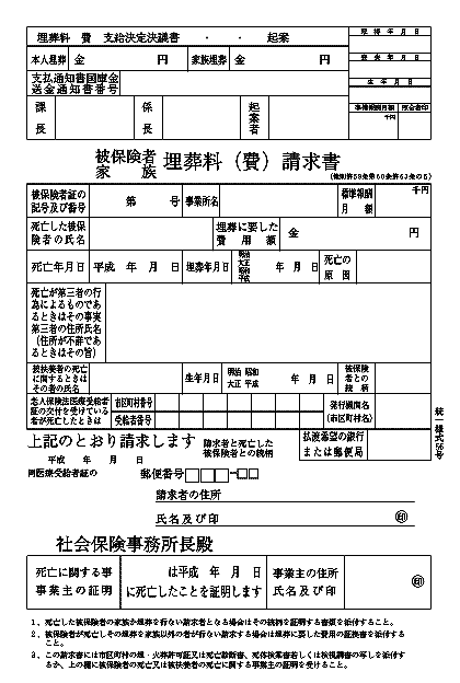 ■申請書類に事業主が所定の事項を記入のうえ、確認のための押印をします。 ■死亡を証明する書類(死亡診断書)を添えます。 ■勤務先で手続きを行なっていただけることもあります。