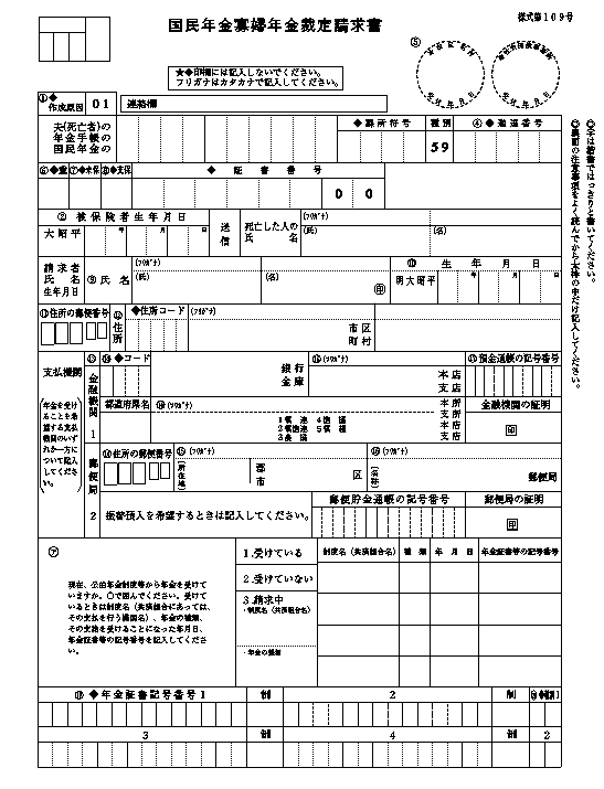 国民年金寡婦年金裁定請求書