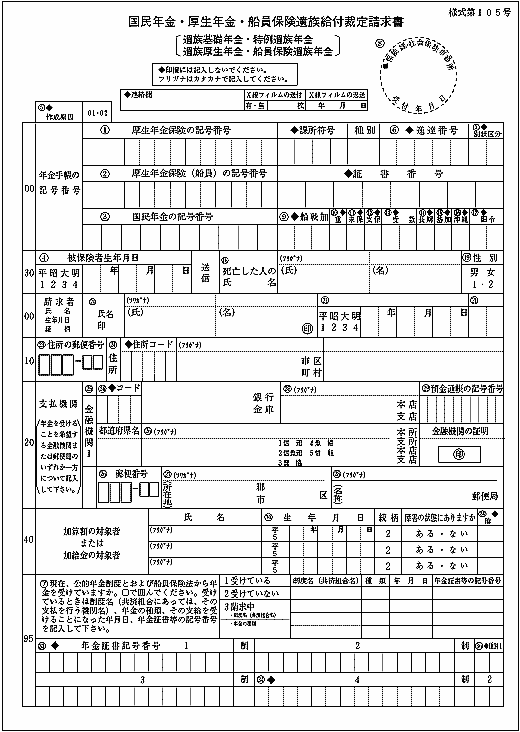 国民年金・厚生年金・船員保険遺族給付裁定請求書