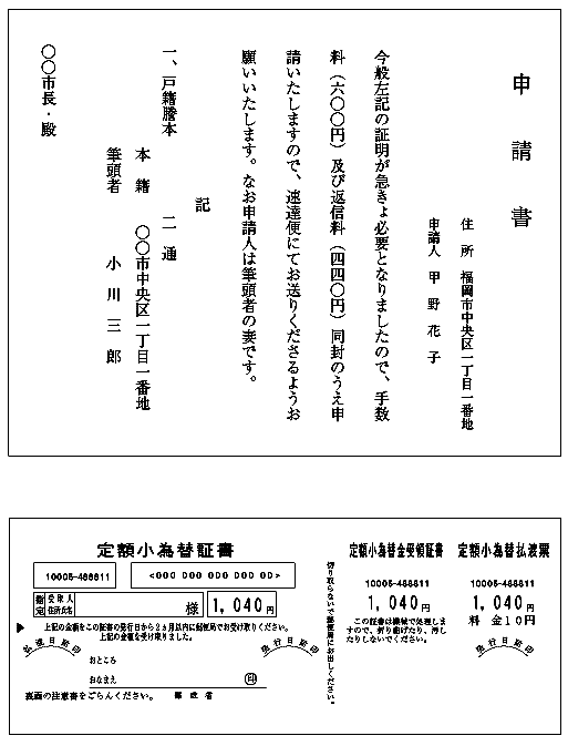 申請書と郵便為替書