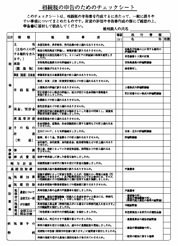 相続税変更のためのチェックシート