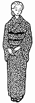 | 和装の場合、関西では地紋のない縮緬、関東では羽二重に染抜きの五つ紋をつけた黒の無地が正式とされています。夏の喪服は、あわせと同じ五つ紋付きの黒無地で、六月と九月がひとえ、七、八月は絽が正式とされていますが、最近では六月から九月まで絽で通すことが多いようです。帯は、絽か紗の黒の名古屋帯が一般的です。 | ![]() |