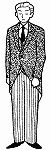 洋装の正式喪服は、黒のモーニングに黒のネクタイです。チョッキはシングルで、上着と共地です。ズボンは縞柄で、裾はシングルです。モーニングは昼間の礼装ですので、通夜では黒のスーツがよいでしょう。 | ![]() |